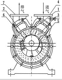 SZ-3及SZ-4SZ水環式真空泵,若要求真空度流量在不大的范圍內變動,可用進氣口的大小來調整,空氣經過真空度調節閥(7)(圖五、圖六)進入泵的進氣室。