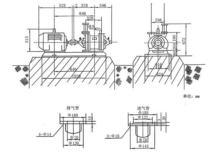 3、SZ型水環式真空泵與氣水分離器間的管路安裝: