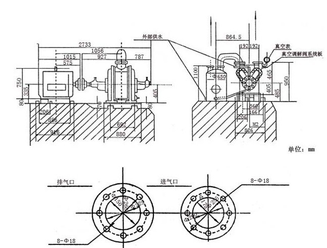6、用球形閥(7)調整由氣水分離器向SZ水環式真空泵水的水量,以便在所要求的技術條件下運轉,使功率消耗最小。